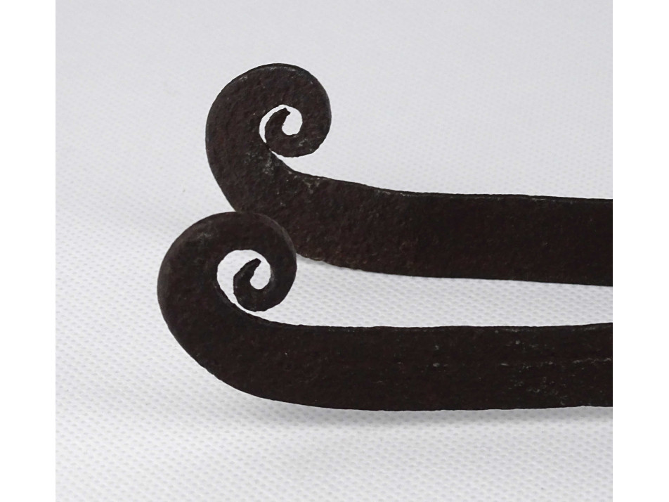 Régi, szép állapotú, patinás kovácsoltvas rönk fogó, kandalló csipesz. Régi kanadalló tisztító készlet része.