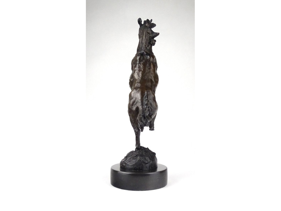 Hibátlan állapotú, jelzett bronz szobor márvány talapzaton. Ágaskodó paripa.