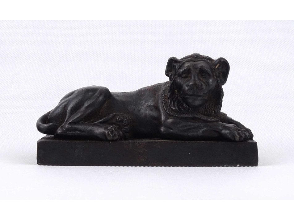 Antik öntöttvas oroszlán szobor MUNKÁCS 6.7 x 13 x 5.5 cm