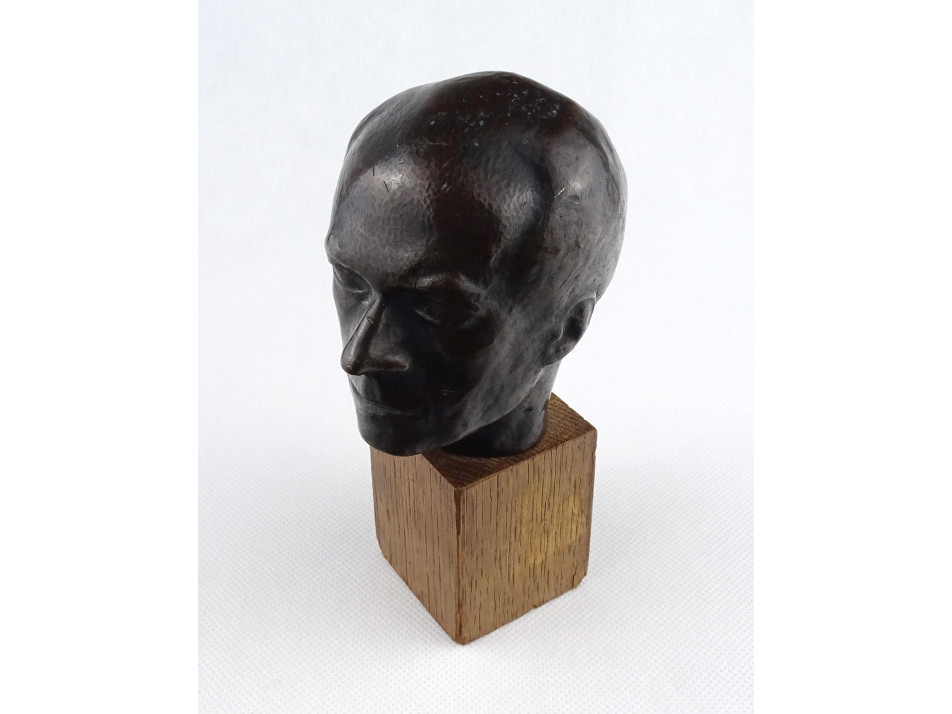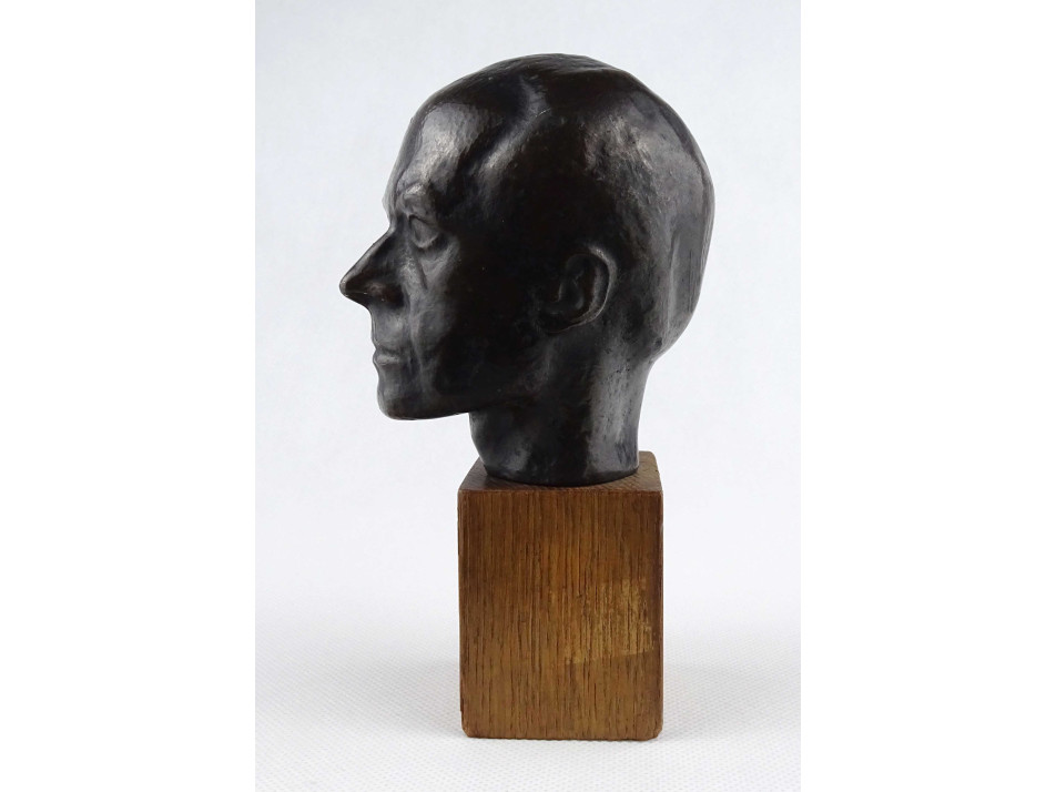 Régi, jelzetlen, fa talapzatra rögzített üreges bronz Bartók Bélát ábrázoló portré szobor.