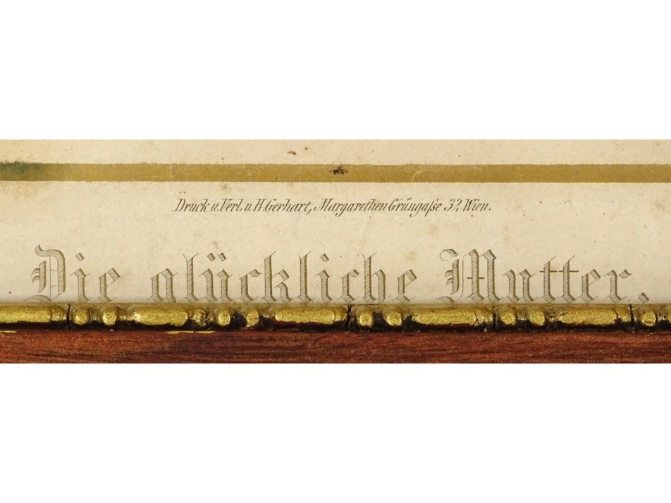 Antik osztrák BÉCSI keretezett V.H. GERHART kőnyomat DIE GLÜCKLICHE MUTTER