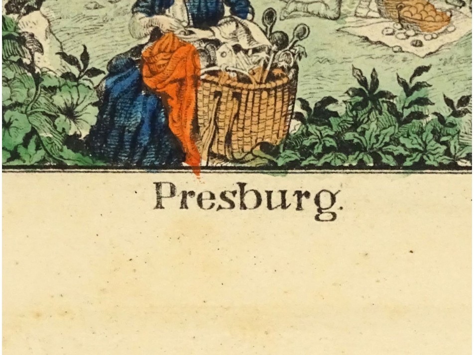 Antik piac a Duna partján Pozsony - Presburg XIX. század