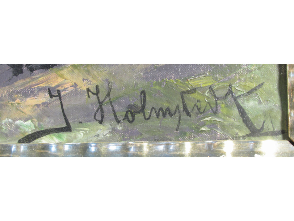 Antik virágos Láng M. Budapest majolika tál "Mariska 1914" felirattal 34.5 cm