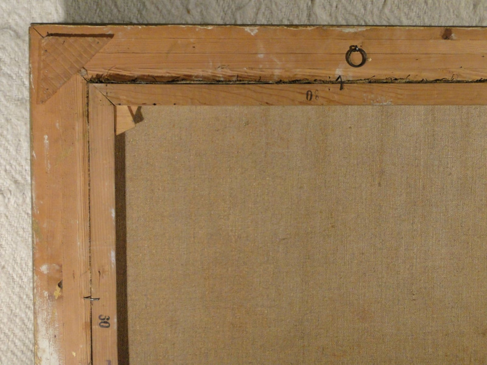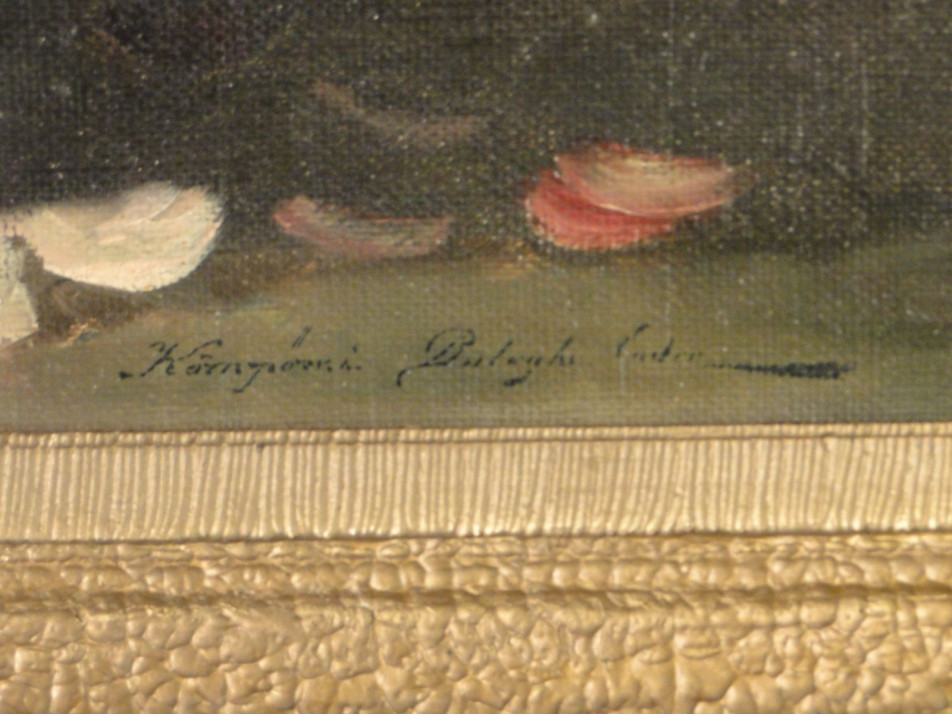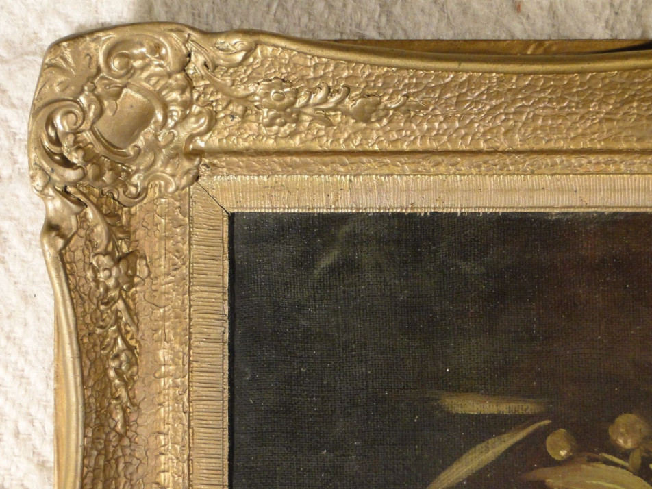 Antik hibátlan állapotú aranyozott blondel keretben jelzett olaj vászon festmény feszítő kereten. Jelezve jobbra lent Kömpöczy Balogh Endre.