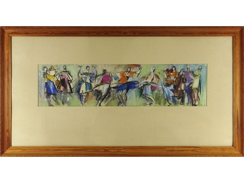 Papír pasztell kép üveglap mögött, fenyő keretben. Akasztási lehetőséggel rendelkezik.