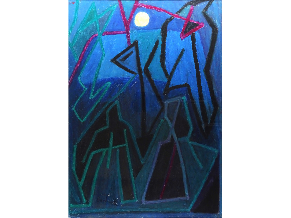 Papír pasztel festmény üveglap mögött, paszpartuzva, modern keretben. Akasztási lehetőséggel rendelkezik. A mi tudásunk szerint nem Bortnyik Sándor munkája.