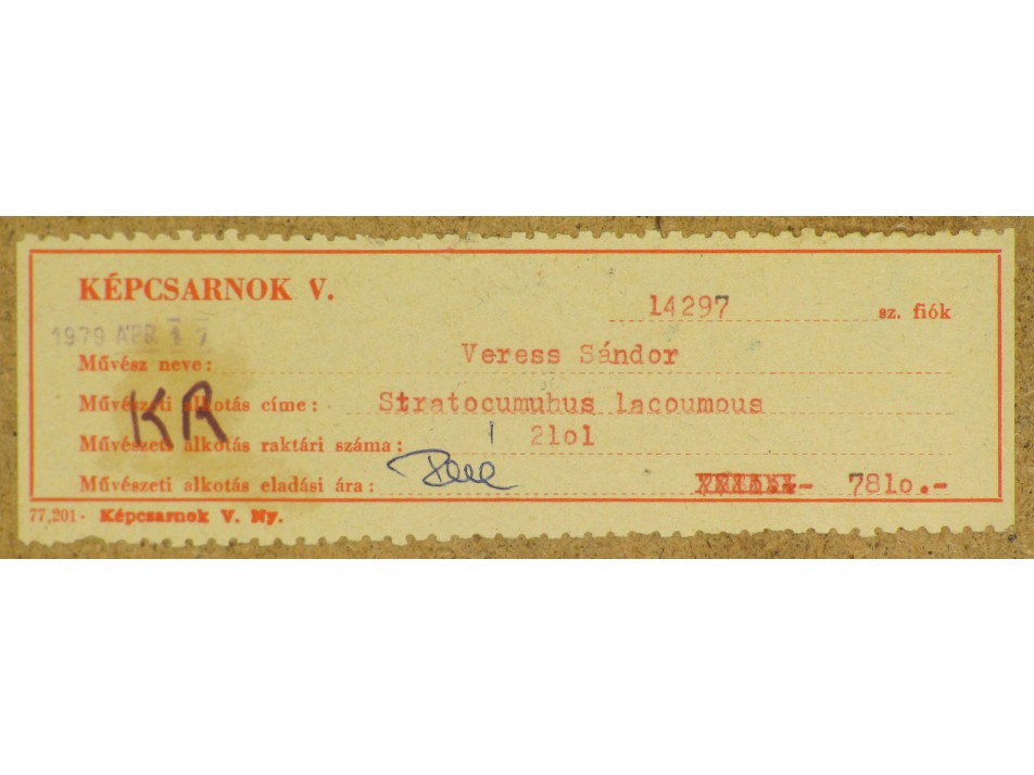 A festmény hátoldalán a Képcsarnokvállalat raglapja látható.