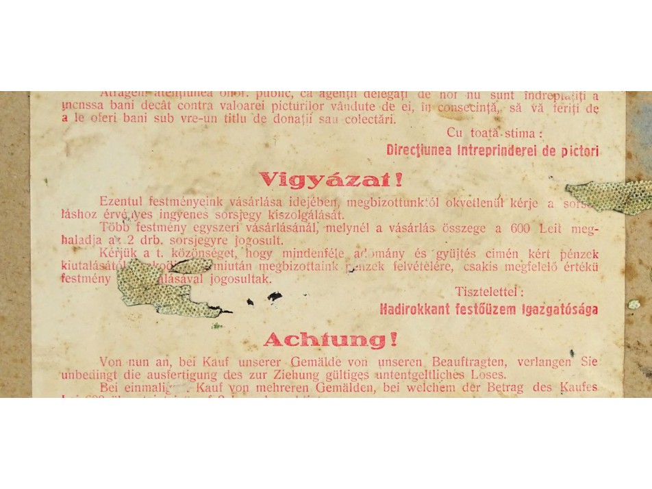 Hátoldalán korabeli címkék, bélyegzők, dátumok: