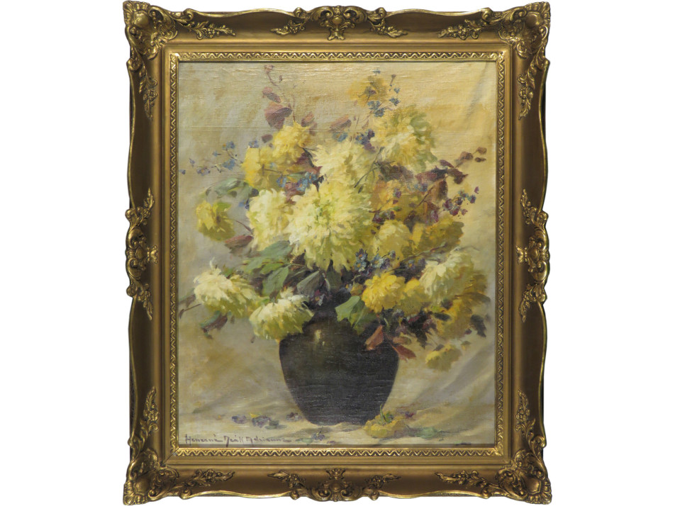 Antik szecessziós tájképes majolika kisváza 11.2 cm