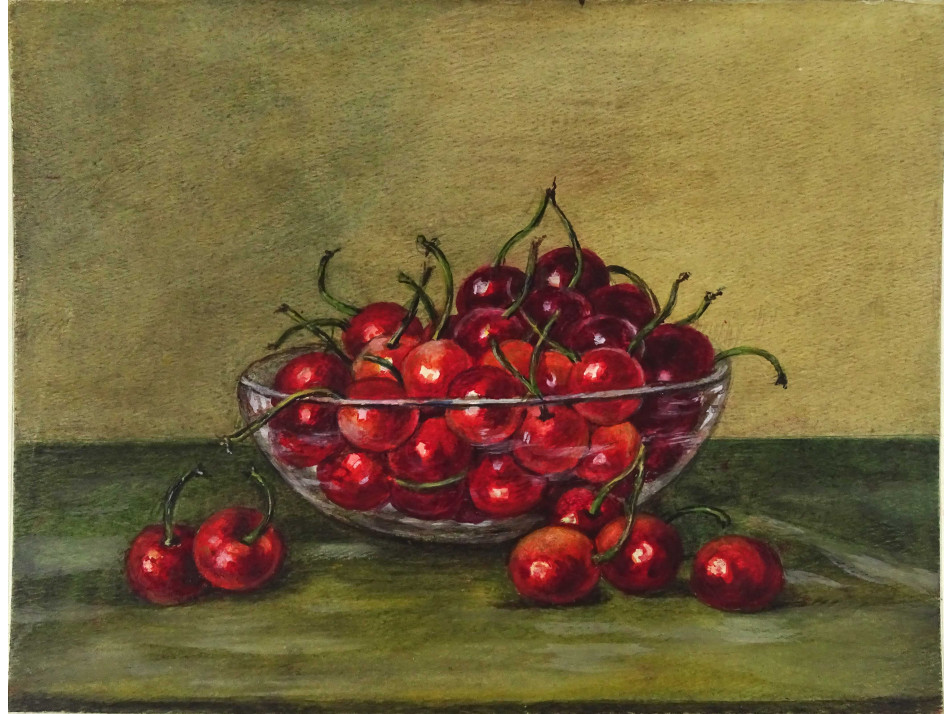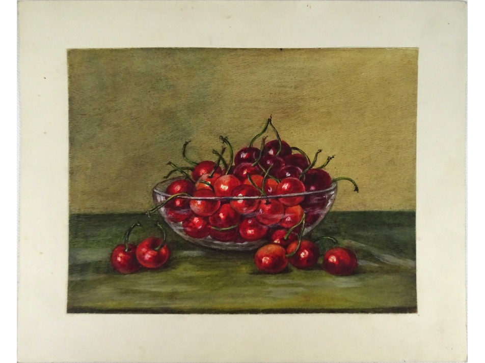 Magyar festő xx. sz. első fele : Cseresznyéstál - gyümölcs csendélet 27 x 20.5 cm