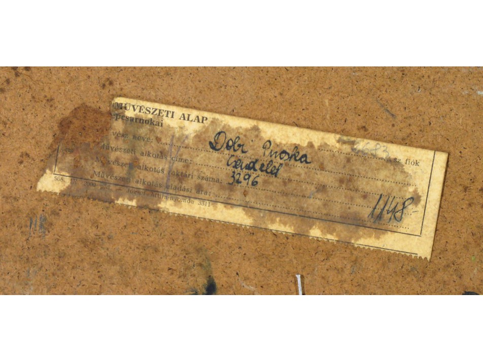A festmény hátoldalán a Képcsarnok Vállalat raglapja található.
