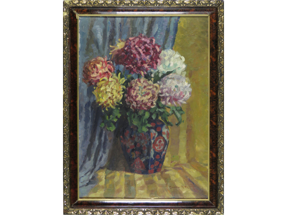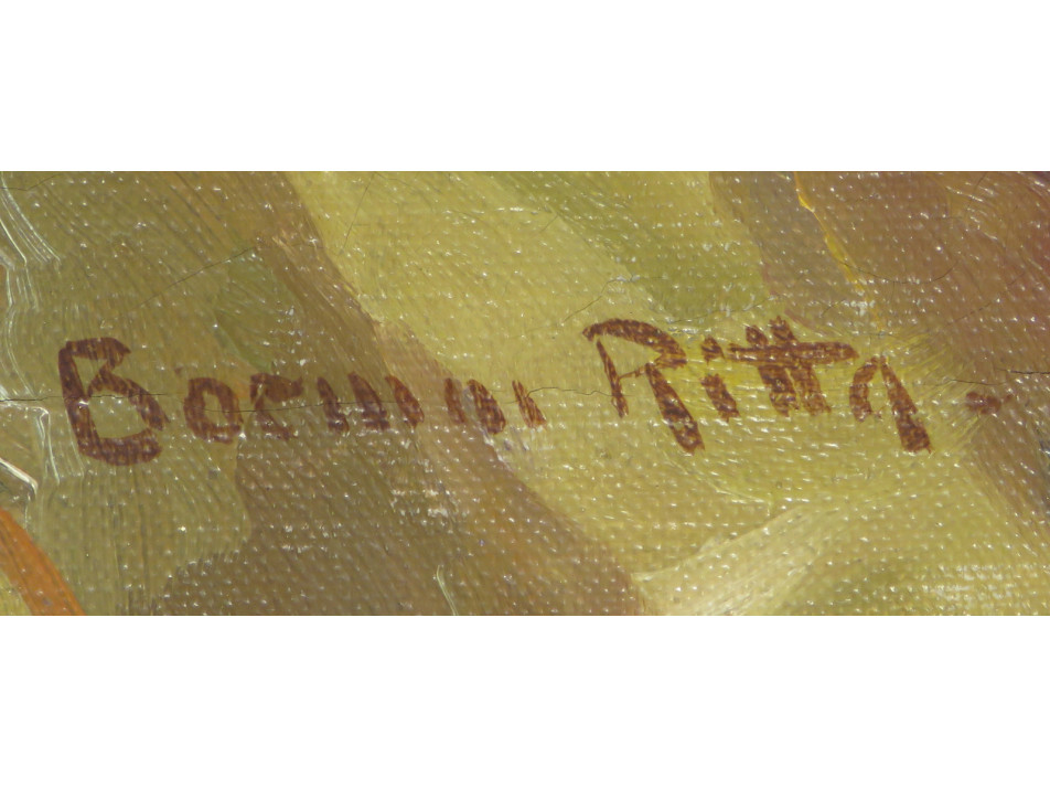 Antik szecessziós tájképes majolika kisváza 11.2 cm