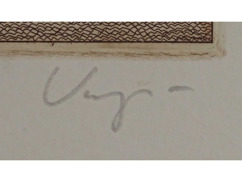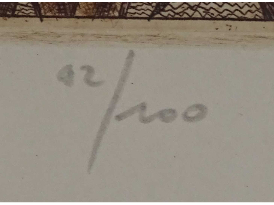 Jelzett, sorszámozott rézkarc, szép állapotú léckeretben, üveglap mögött.
