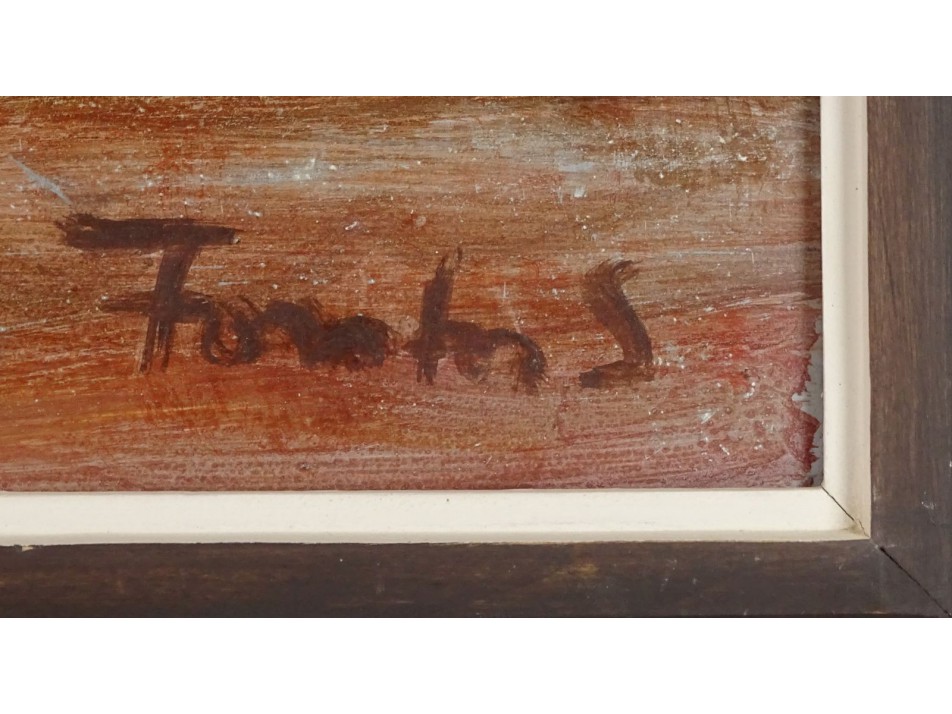 Olaj, vegyes technika farost festmény, szép állapotú barna képcsarnokos keretben.
