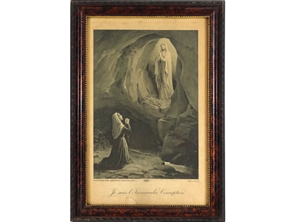 Régi keretezett francia vallási emléktárgy "szeplőtelen fogantatás" 31 x 21.5 cm