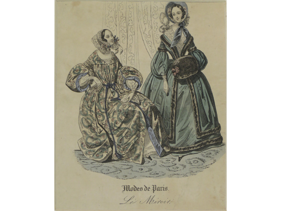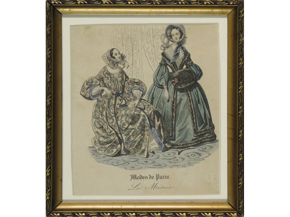 Antik színezett magyar divatlap litográfia - A "Családi kör" divatképei