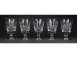Antik kisméretű VIN BRAVAIS feliratú fém pántos üveg boros pohár készlet 6 darab
