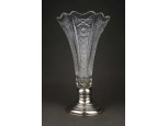 Ezüst talpas, csiszolt kristály váza 23 cm