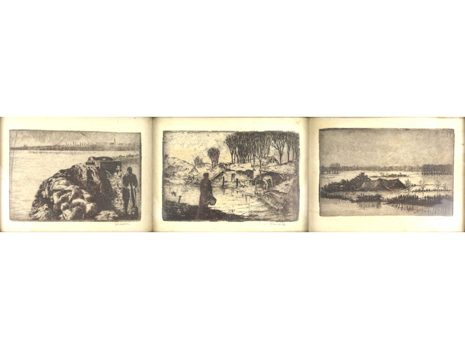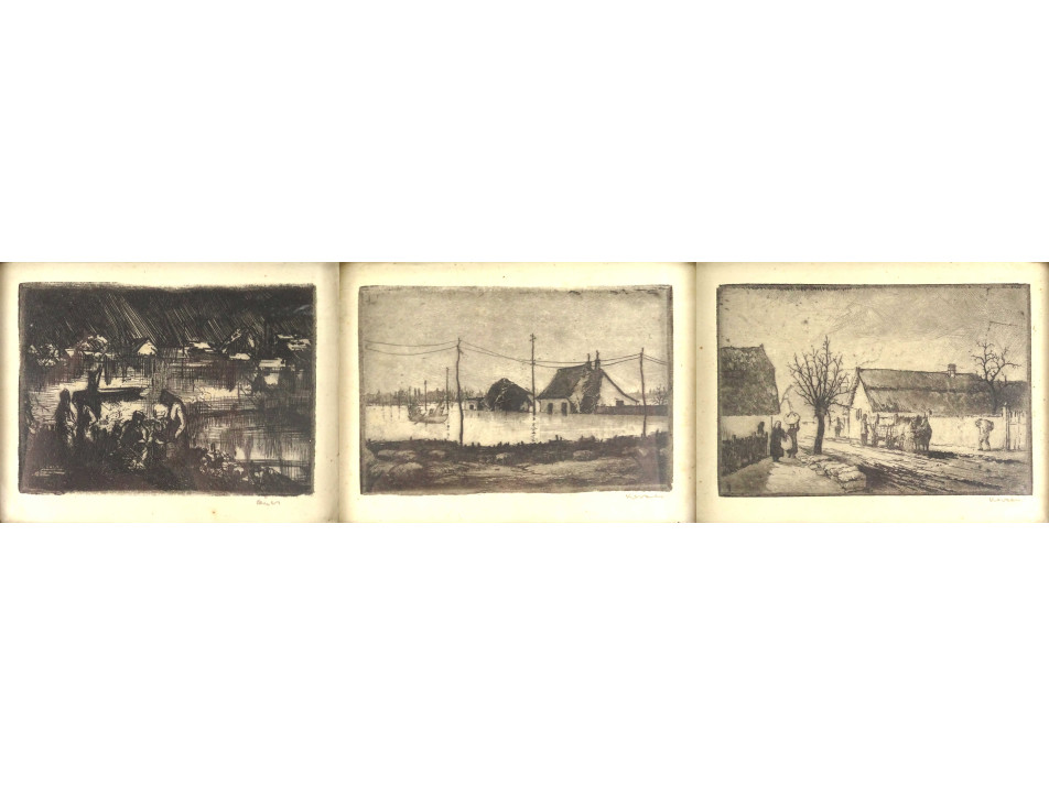 Árvíz az alföldön - 9 darab kisméretű, SZŰCS JÁNOSI NOVÁK KOVÁCS által jelzett rézkarc