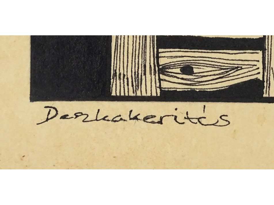 Papír linómetszet barna keretben. Akasztási lehetőséggel rendelkezik.