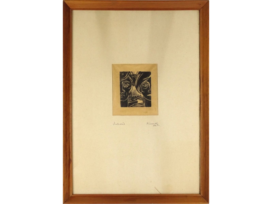 Papír fametszet üveglap mögött, fenyőfa keretben. Akasztási lehetőséggel rendelkezik.