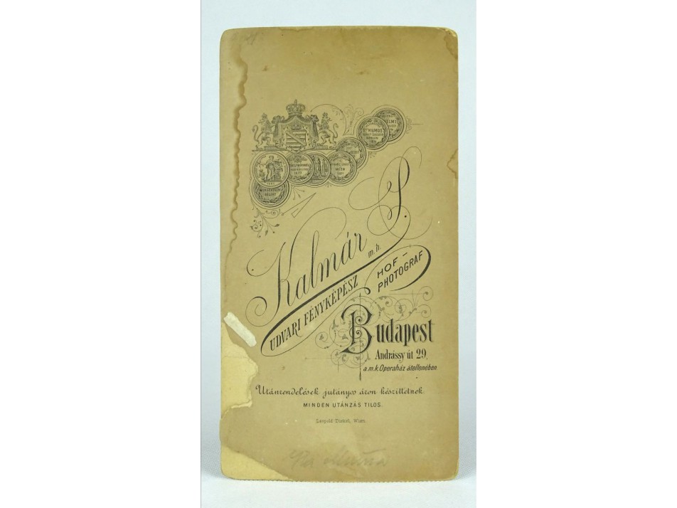 KALMÁR J. UDVARI FÉNYKÉPÉSZ HOF-PHOTOGRAF BUDAPEST ANDRÁSSY ÚT 29. A M.K. OPERAHÁZ ÁTELLENÉBEN