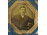 Antik Első vagy Második Világháborús, izraeli zászló kék-fehér színeivel készített zsidó emléktárgy. Közepében antik fotográfia, férfi portré.