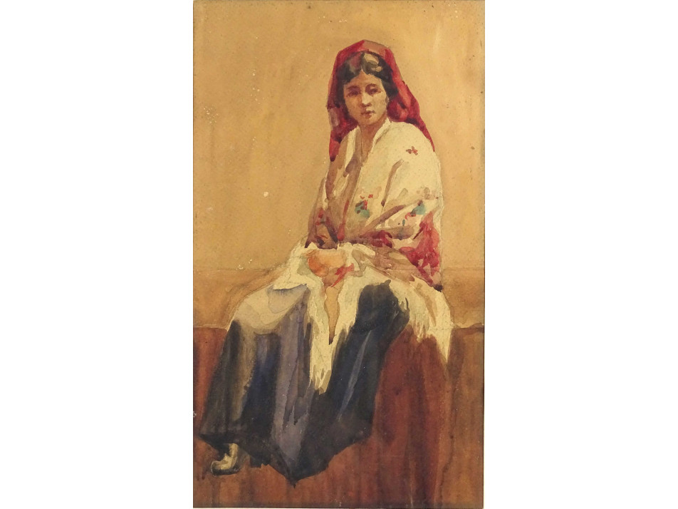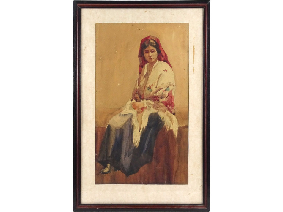 Magyar festő xx.század első fele : Asszony fejkendőben - akvarell