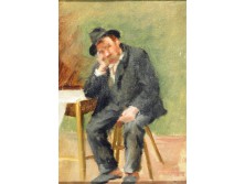 Antik 1920 körüli kézi csomózású fekete nagyméretű keleti mintás perzsaszőnyeg 177x352 cm