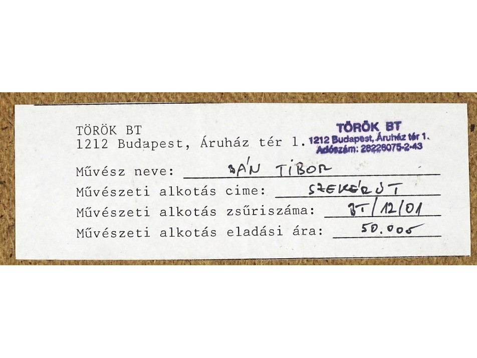 Hátoldalán galériás papírcímke, rajta felirat: