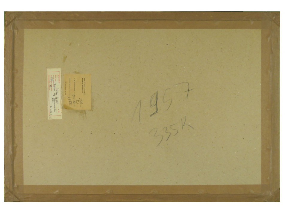 A festmény hátoldalán a Képcsarnok Vállalat raglapja található.