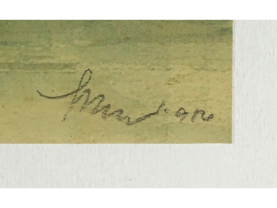 Papír akvarell festmény üveglap mögött, aranyozott keretben. Akasztási lehetőséggel rendelkezik.