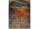 Régi szélmalmos tűgobelin aranyozott keretben 26 x30.5 cm