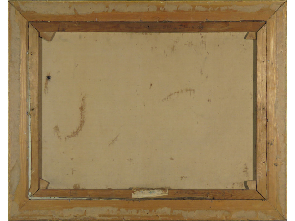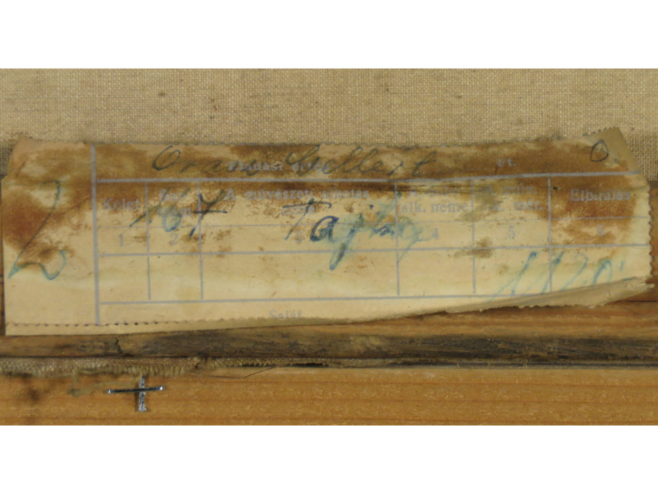 A festmény hátoldalán a Képcsarnok Vállalat raglapja látható.
