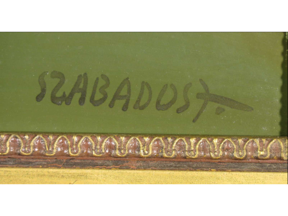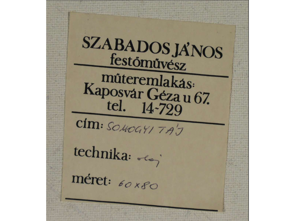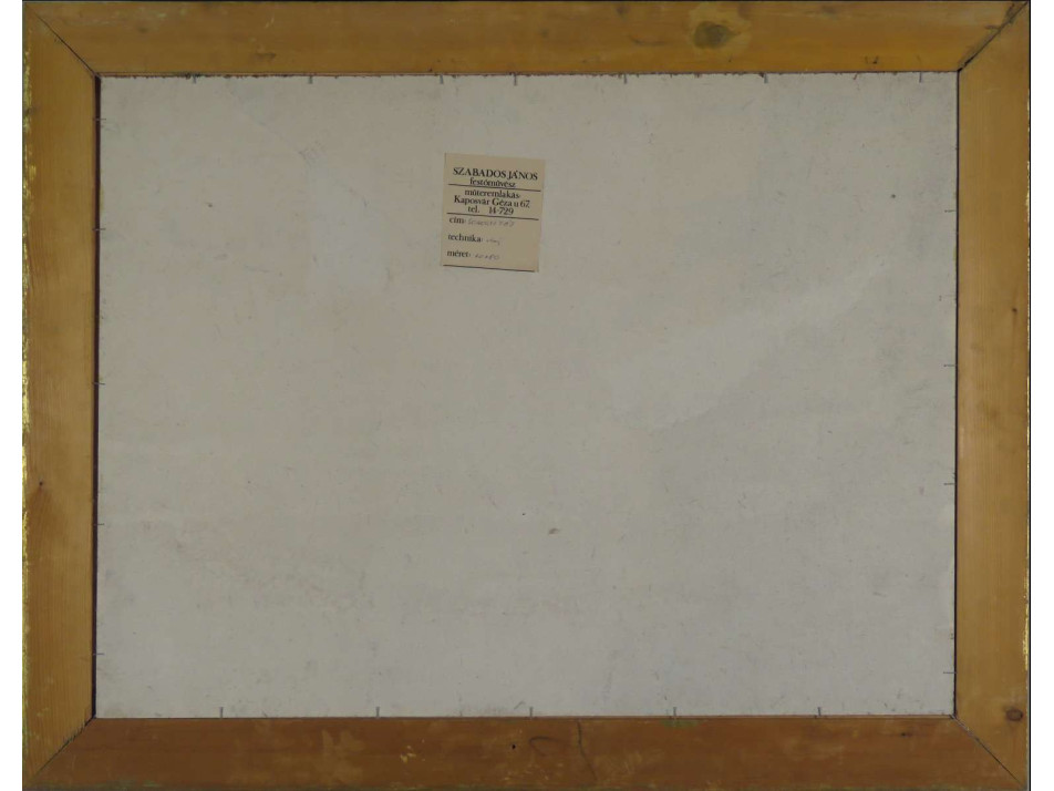 A festmény hátoldalán a művész eredeti raglapja látható.