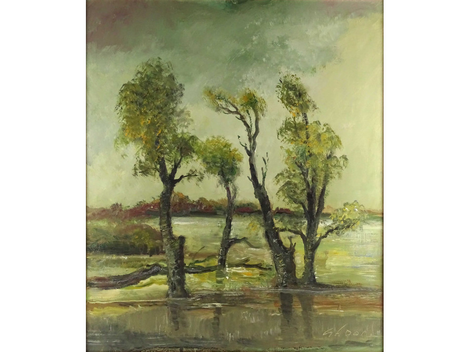 Olaj farost festmény, tájkép hibátlan állapotú aranyozott keretben. Azonnal falra akasztható, ajándékozható állapotban.