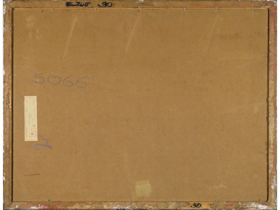 A festmény hátoldalán a Képcsarnok Vállalat raglapja található.