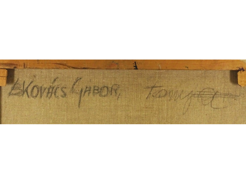 Olaj vászon festmény képcsarnokos keretben. Akasztási lehetőséggel rendelkezik.
