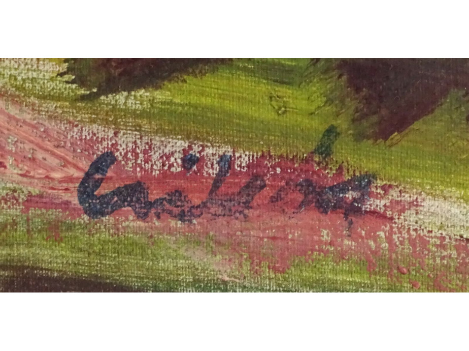 Olaj vászon festmény, üveglap mögött, régi keretben. Akasztási lehetőséggel rendelkezik.