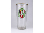 Antik festett üveg, I. világháborús emlékpohár a Központi hatalmak lobógóival 16.7 cm