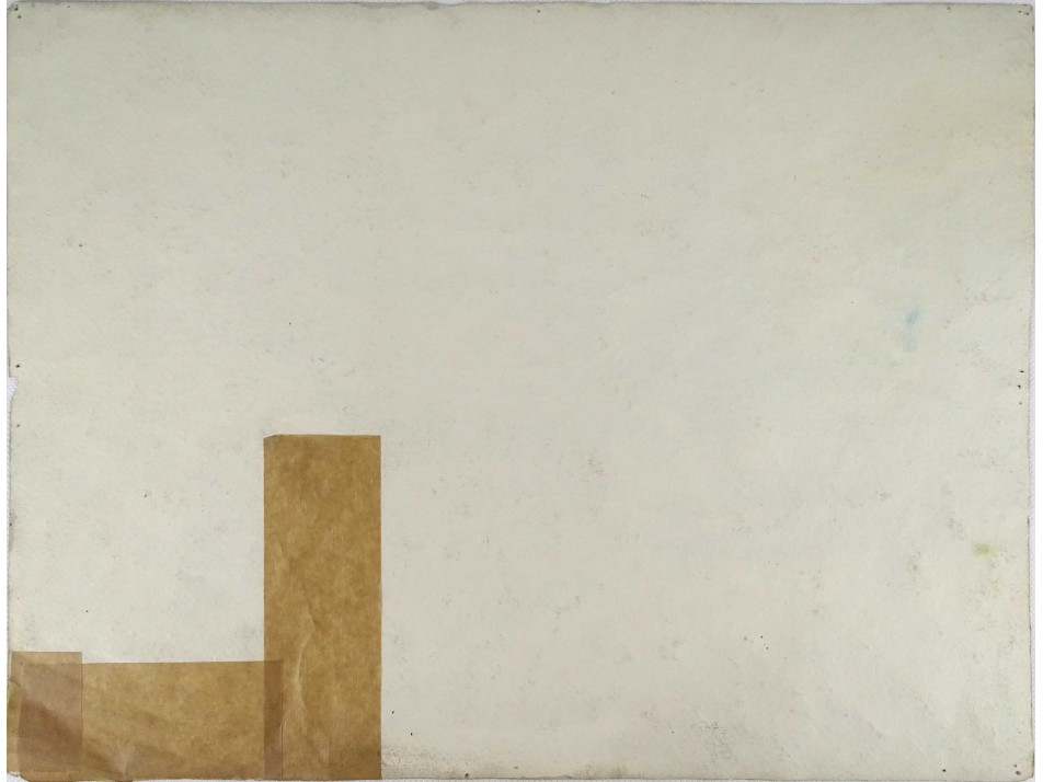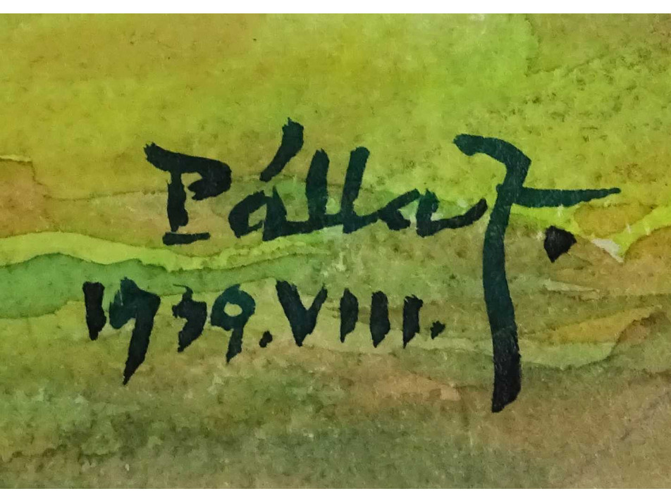Papír akvarell festmény, keret nélkül. A papír szakadt, hátulról ragasztott.