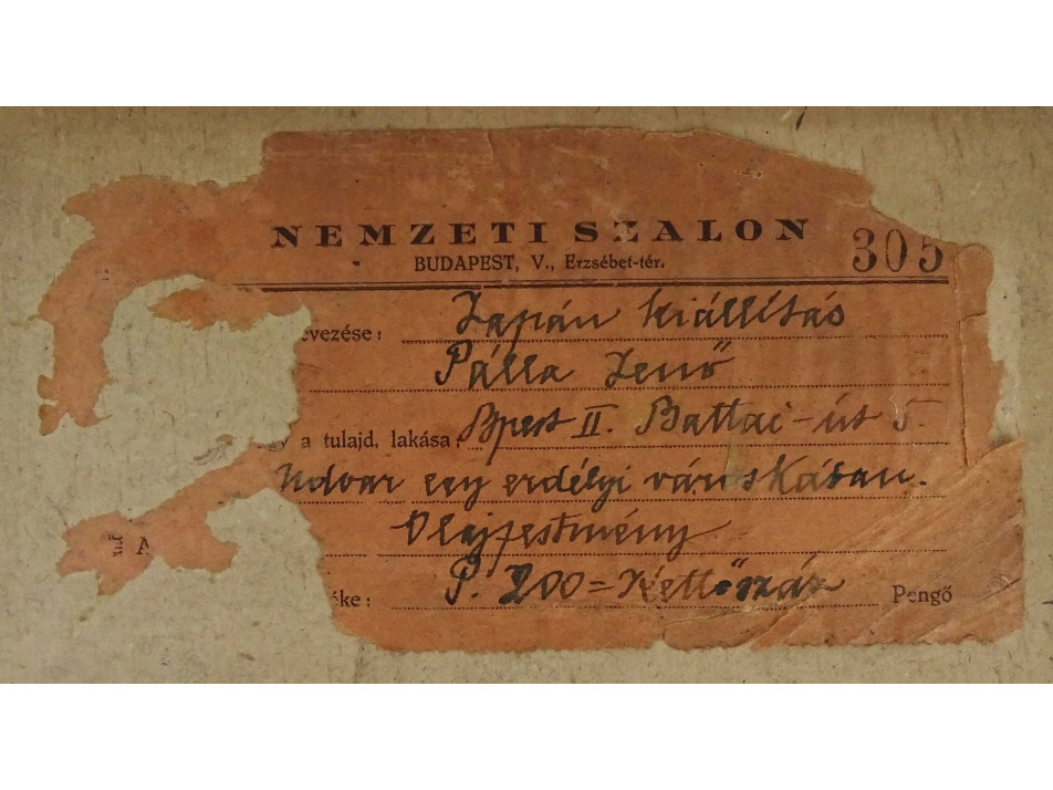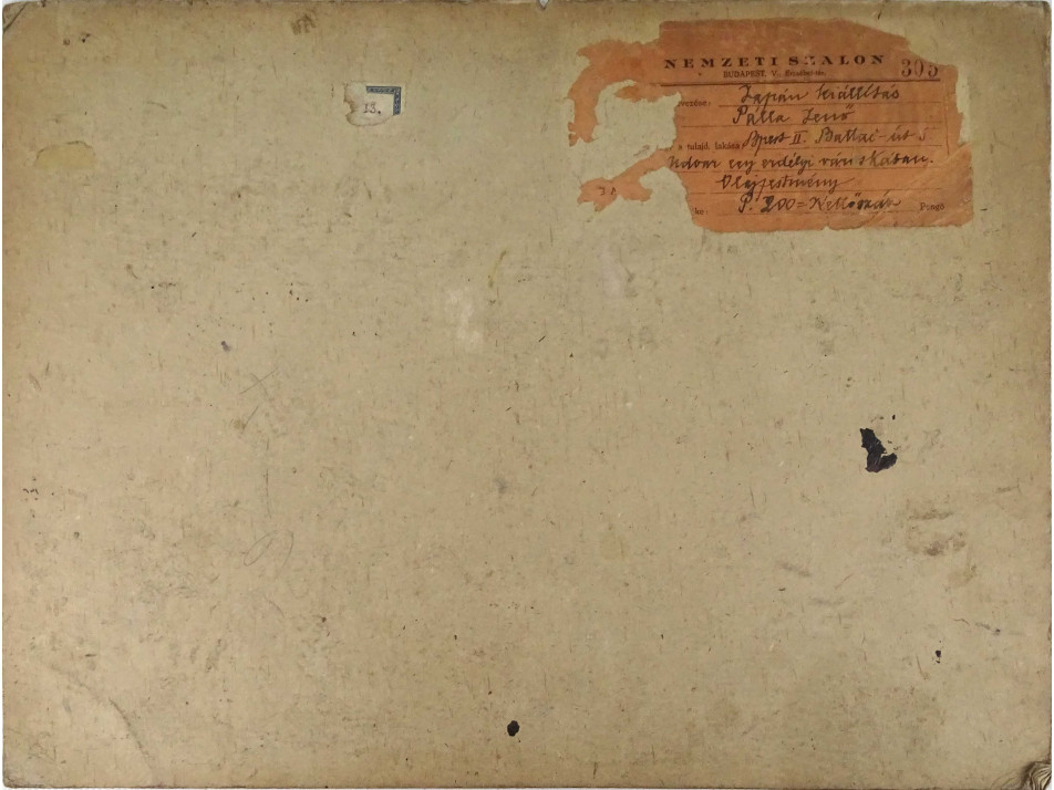 Hátoldalán kiállítási címke maradvány, lásd fotó.