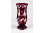 Antik bíborpácolt csiszolt üveg Eggermann talpas váza 16 cm