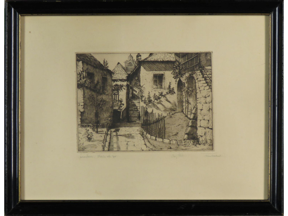 Dinnyés Ferenc : Virágos udvar 41.5 x 36.5 cm