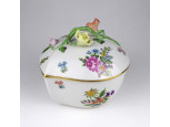 Nagyméretű szív alakú, virágmintás Herendi porcelán bonbonier