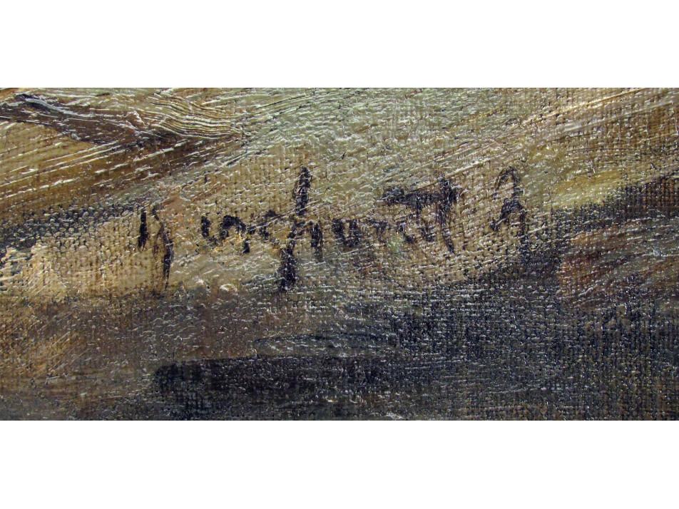 Régi jelzett olaj vászon festmény: Tengerparti séta 1912 98 x 72 cm
