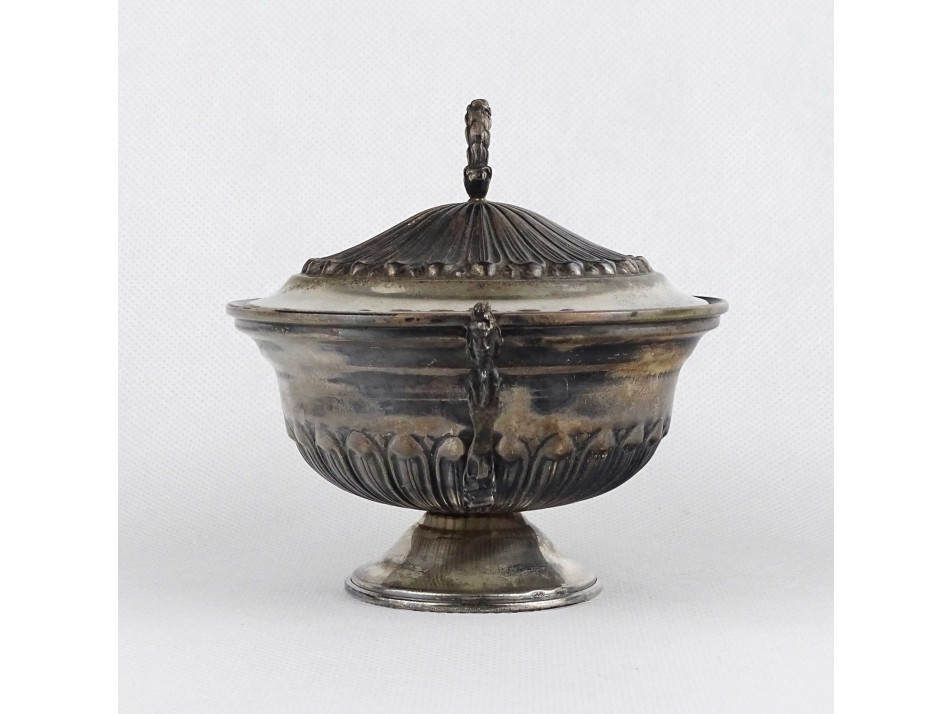 Régi 800-as finomságú antik formavilágú olasz ezüst fedeles bonbonier 175 g