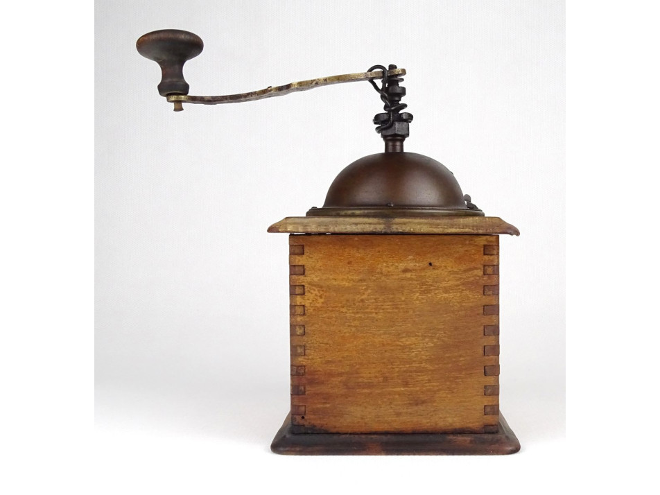 Szép állapotú fa daráló, csapolt szerkezettel, eredeti állapotban. Fa fogantyúja és fiókja is megvan.