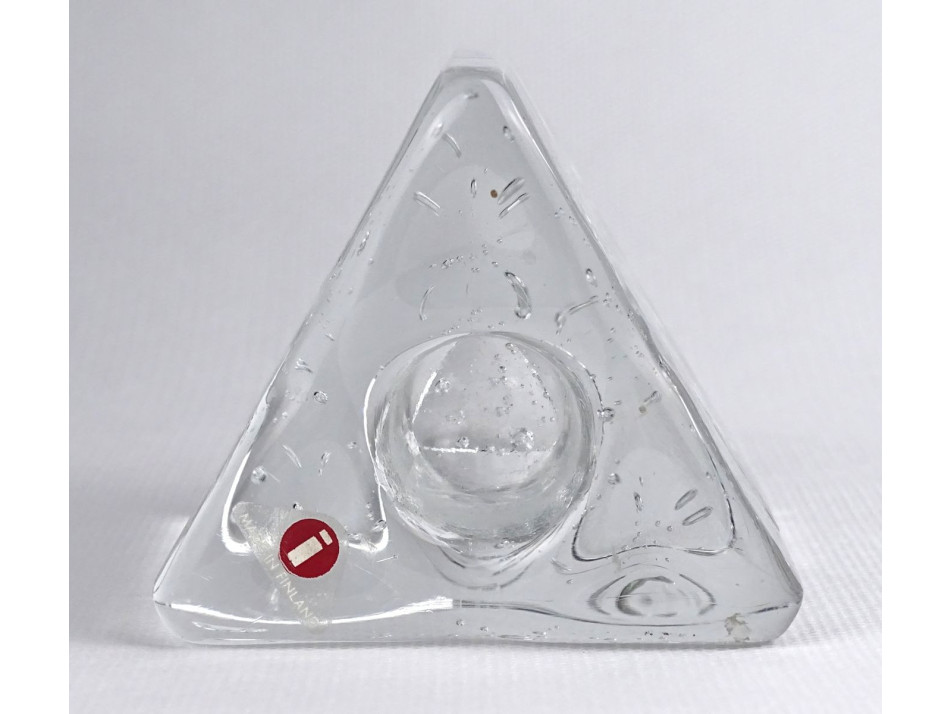 Jelzett modern finn skandináv művészi jégüveg gyertyatartó 9 cm