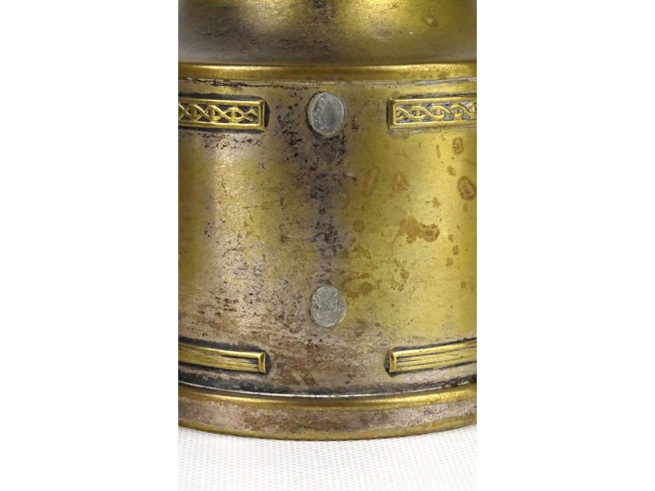 Antik jelzett, szép állapotú, három darabos ezüstözött, patinás empire kávéskészlet. Korabeli ezüstözése kopottas, nyomai szépen látszanak.